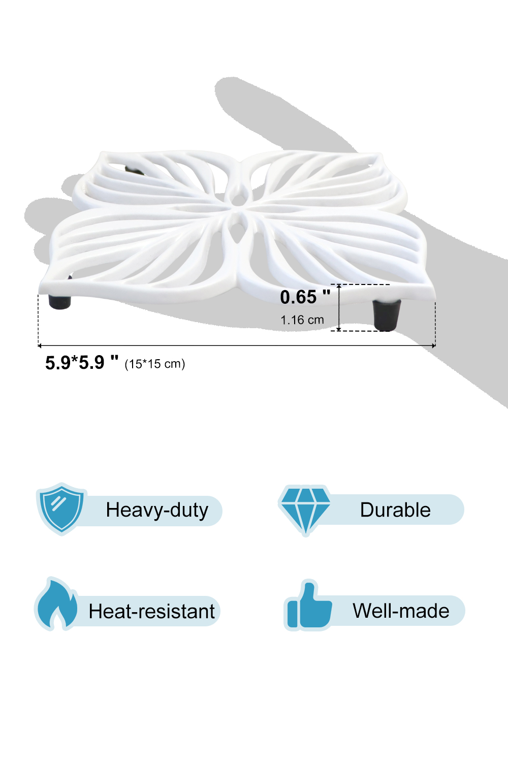 • [Heavy-Duty Cast Iron] Rest assured that the HomeHand decorative trivet is heavy-duty and strong. You can confidently place a hot, heavy plate on this cast iron piece without any concerns.