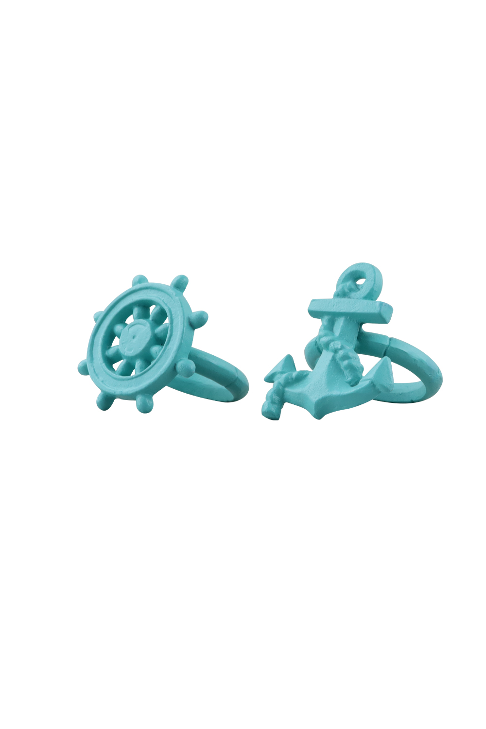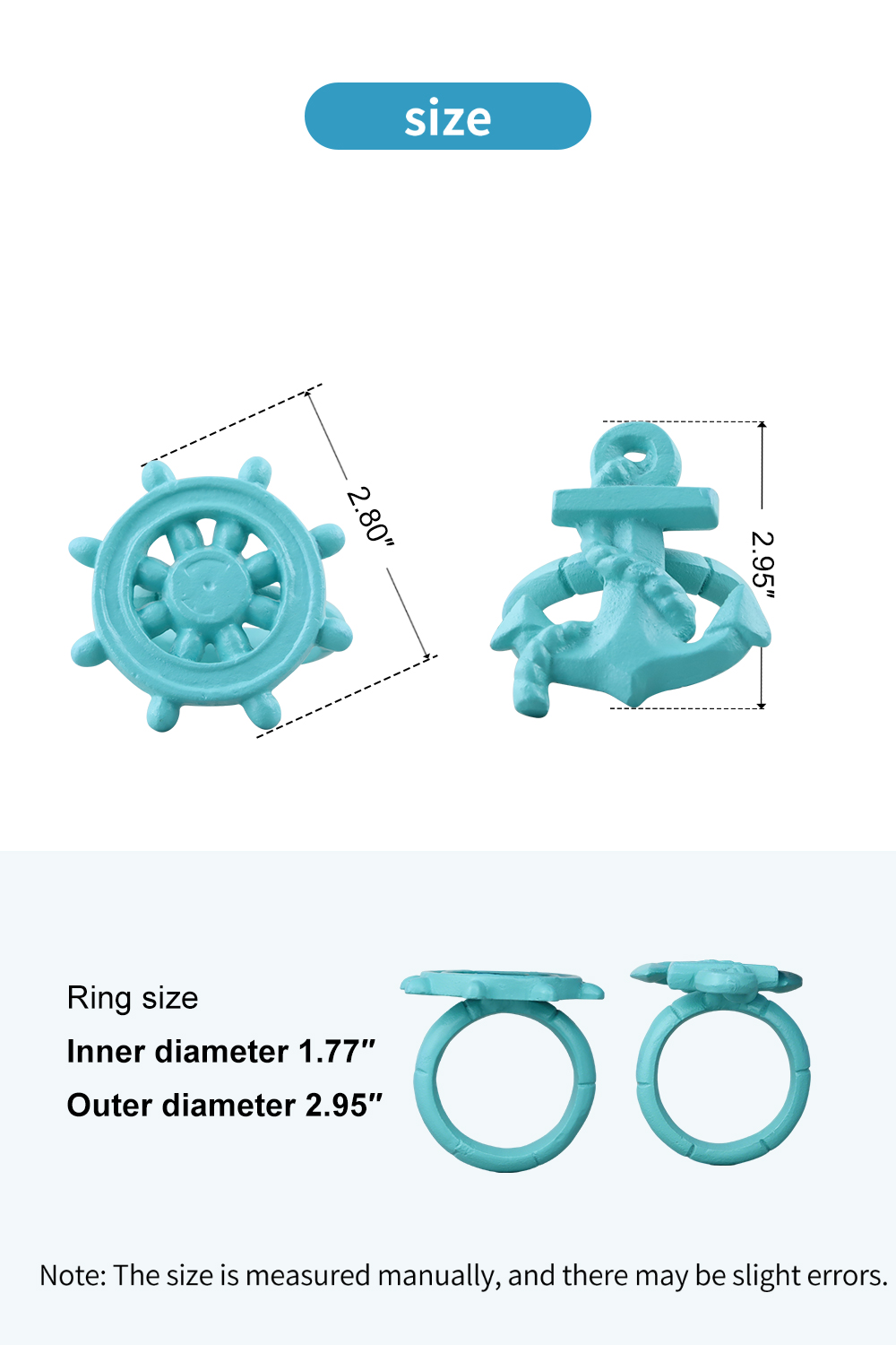 Made from premium cast iron, these durable and reusable napkin rings are designed to fit all types of napkins, elevating your table with timeless elegance. Slide a folded or rolled napkin through the ring for an effortless yet sophisticated touch. To maintain their quality, wipe clean with a soft cloth and store in a dry place. Each set includes one anchor-shaped napkin ring (2.95″L × 2.44″W) and one rudder-shaped napkin ring (2.8″diameter), both with an inner diameter of 1.77″and an outer diameter of 2.95″ to fit most napkins with ease.